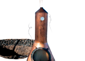 Double distilled copper pot stills. Heat source made of bagasse (spent agave fivers used instead of wood).